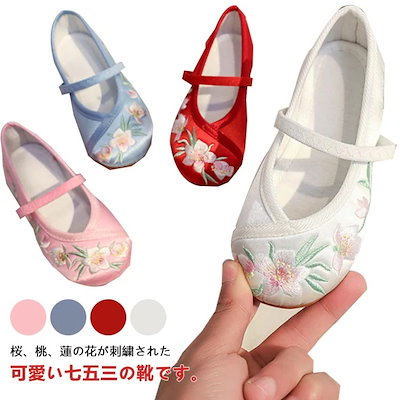 七五三 靴 痛くない 草履 キッズ 女の子 七五三 シューズ 子供靴 花柄 桃 蓮 桜 刺繍 赤 ピンク ホワイト ブルー 和柄の靴 お正月 着物 和装 和服 履物 チャイナ靴 唐装 漢服 ダンスシュ
