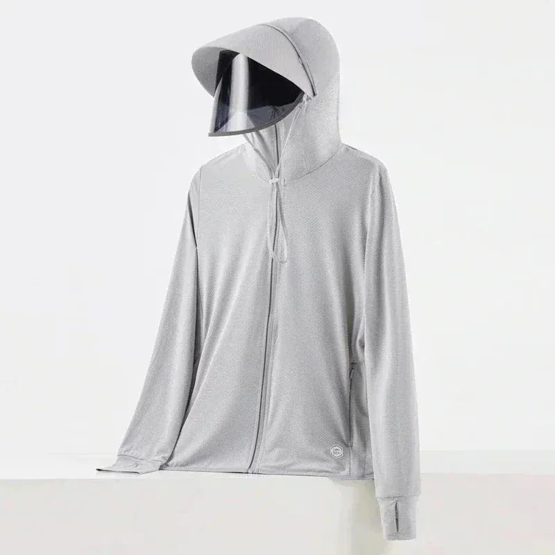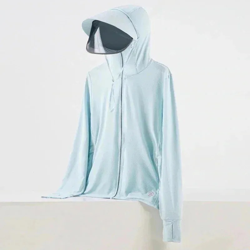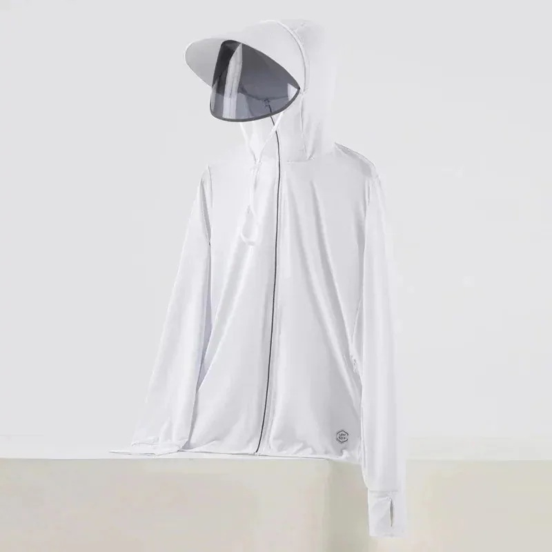 即納 UVカットパーカー ラッシュガード UVカット アウター 接触冷感 指穴 つば 取り外し あご紐 調整可能 サンバイザー 3way 体型カバー 薄手 速乾 シャリ感 熱中症対策 日焼け防止服