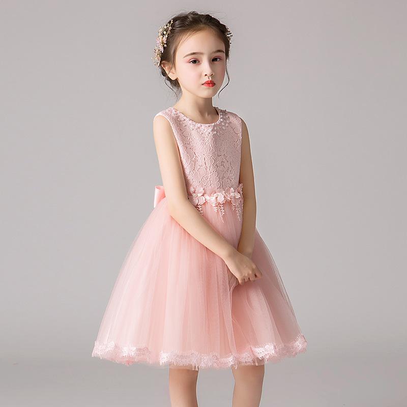 ワンピースドレス 子供 女の子 発表会 卒業式 ピアノ フォーマル キッズ ガールズ パーティー 結婚式 入園式 丸ネック 蝶結び 真珠