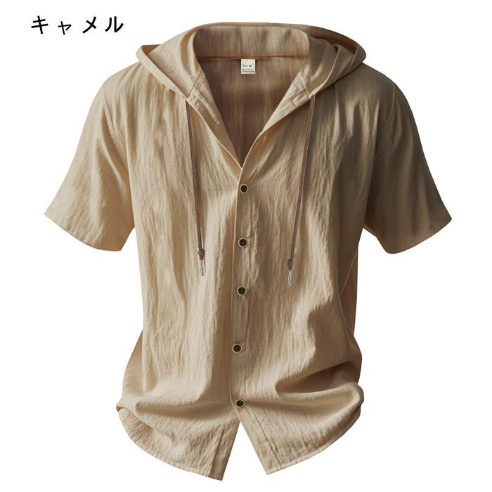 開襟 おしゃれ 涼しい 夏 トレンド 新作 半袖パーカー 綿麻 パーカー メンズ
