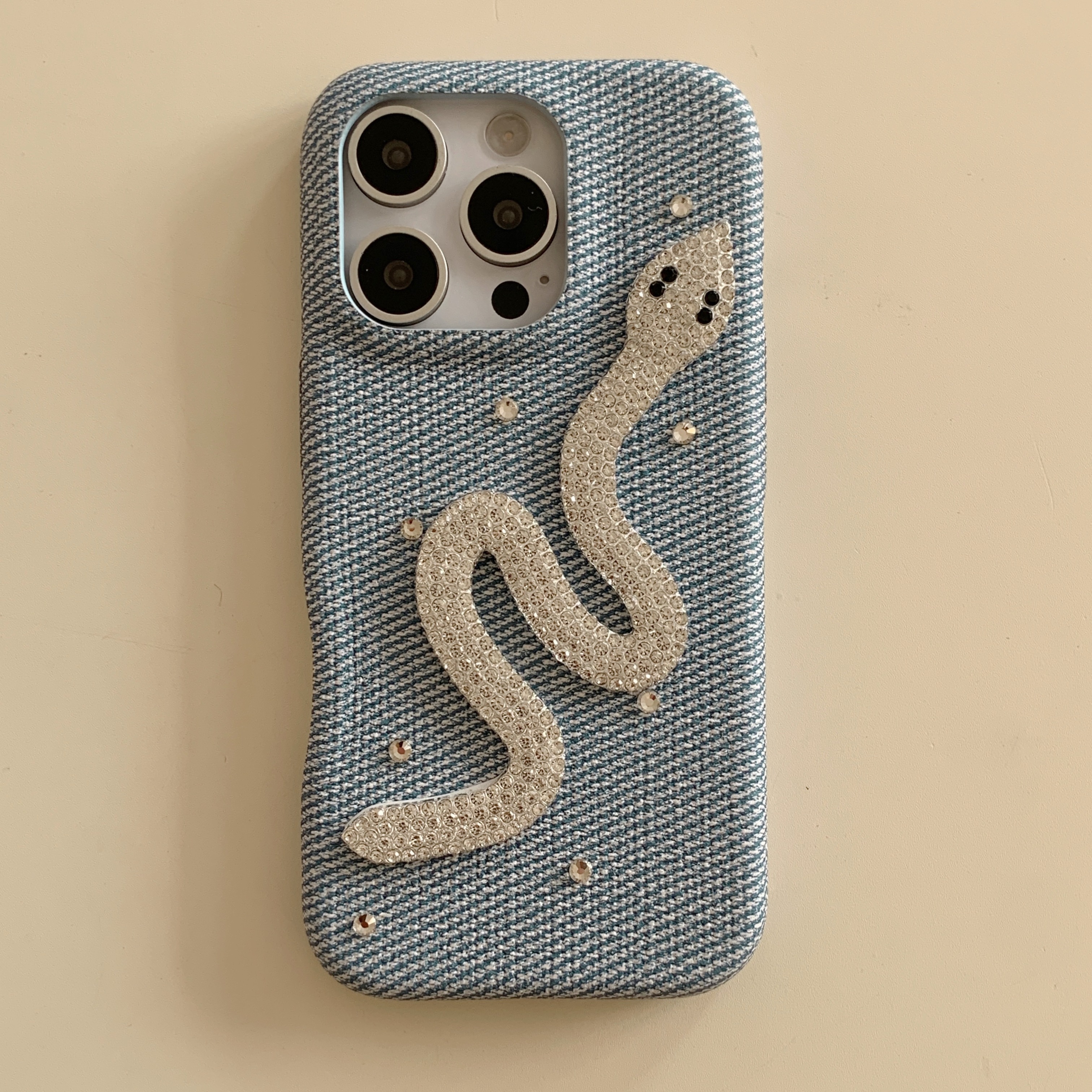 DEMUXIデニム×スパンコール 韓国ケース iPhoneケース スマホカバー iPhoneカバー 蛇モチーフ iPhoneシリーズ対応 スマホケース 衝撃吸収 滑り止め 薄型軽量
