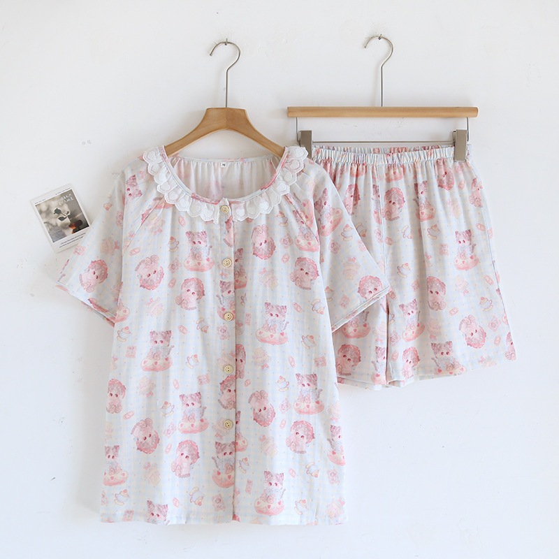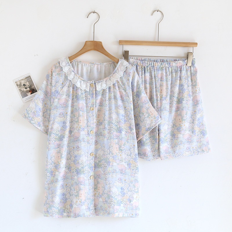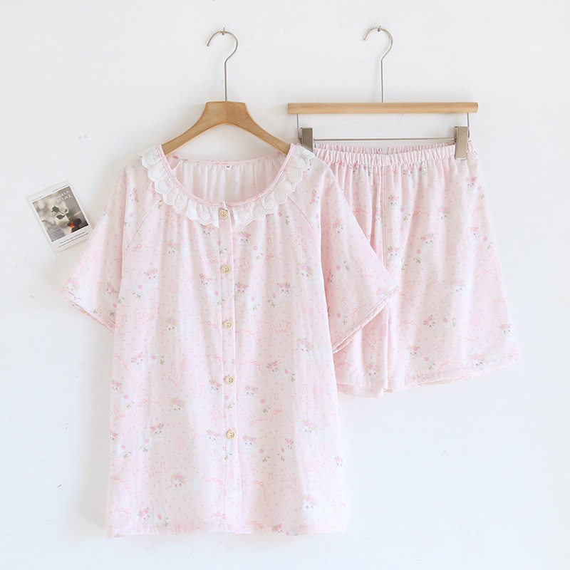 部屋着 かわいいレース丸首パジャマ ゆったり セットアップ ルームウェア 上下セット レディース 生地が柔らかくて快適