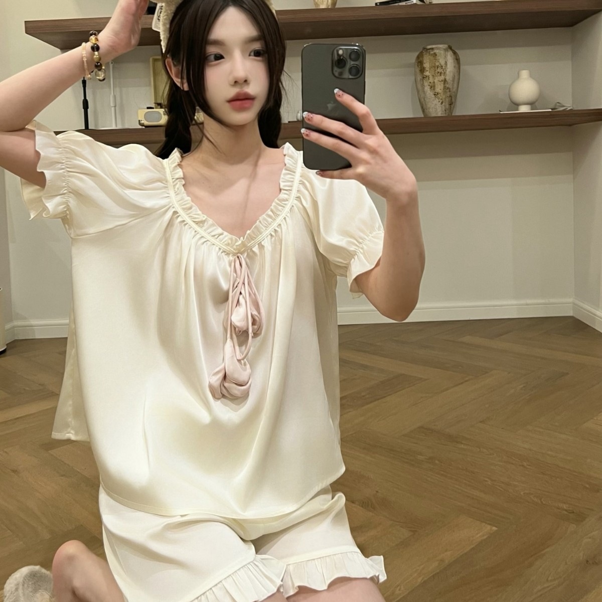 insシンプル部屋着 かわいいパジャマ 無地 Vネックチューリップゆったり セットアップ ルームウェア 上下セット レディース 生地が柔らかくて快適