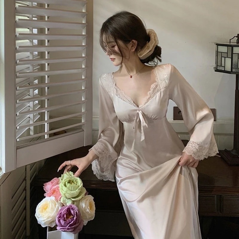2025 春 レトロ風 キャミワンピース ネグリジェ レディース セクシー ロングワンピース アイスシルク パジャマ ホームウェア デザイン感 ゆったり 快適 チェストパッド付き パジャマ 母