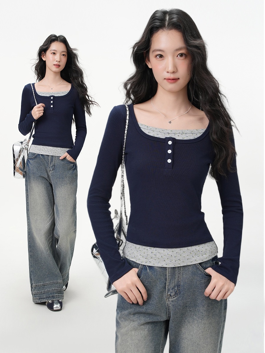 2025新作入荷 韓国風 カットソー セパレート拼接 長袖Tシャツ レディース ボディコン シェイプアップ インナーコーデ可能