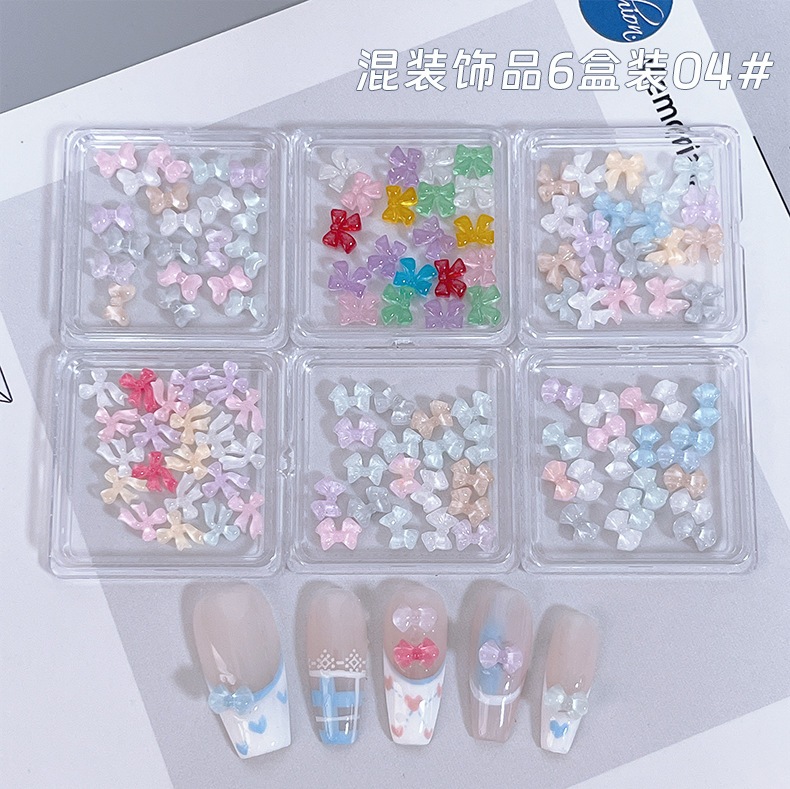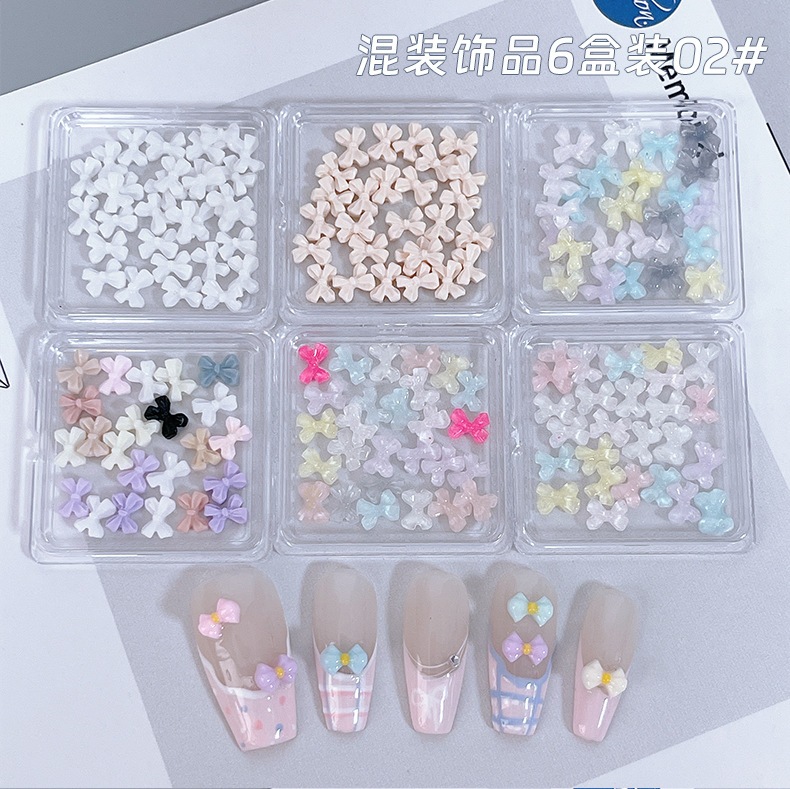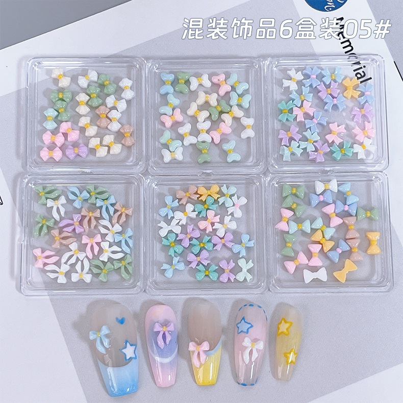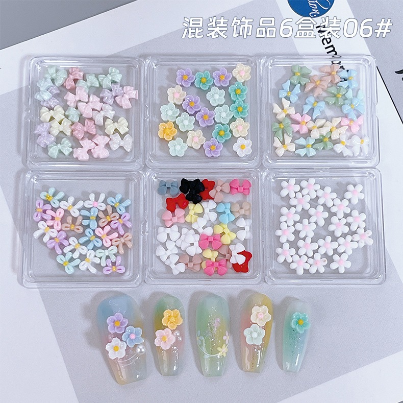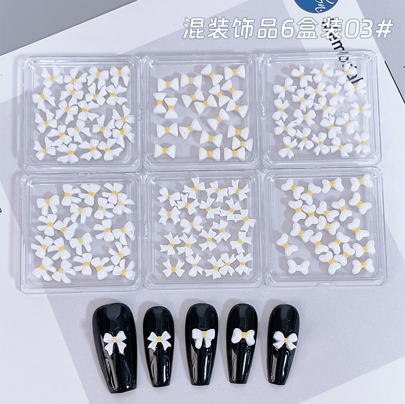 ネイルアート 人気商品 ミニ ボウ ホワイト フラワー 6箱 DIY ネイルデコレーション 素材 パッケージ アクセサリー