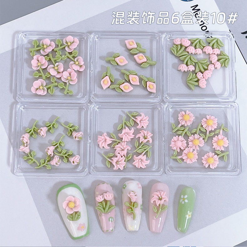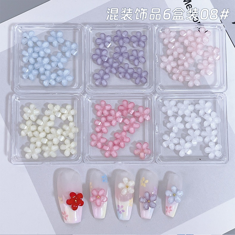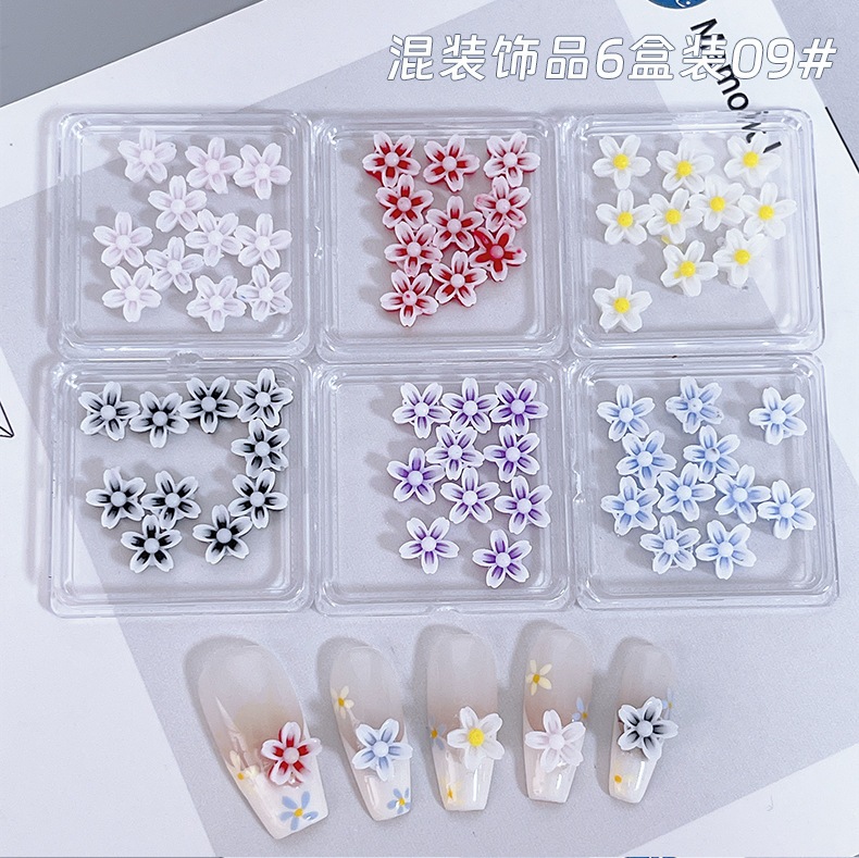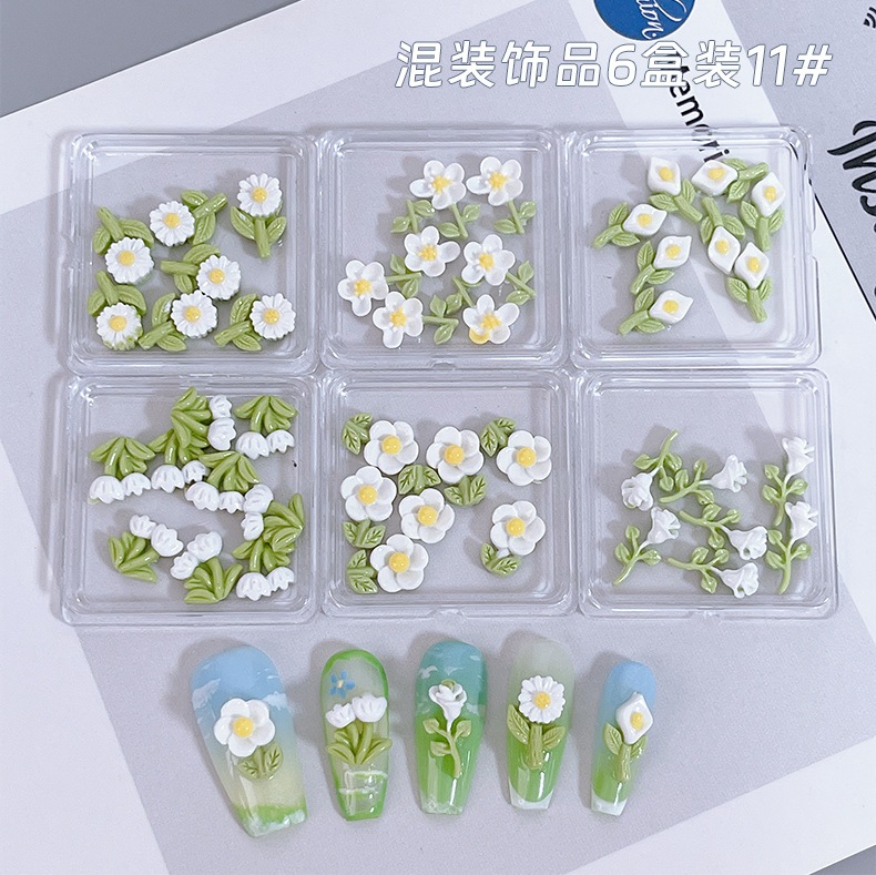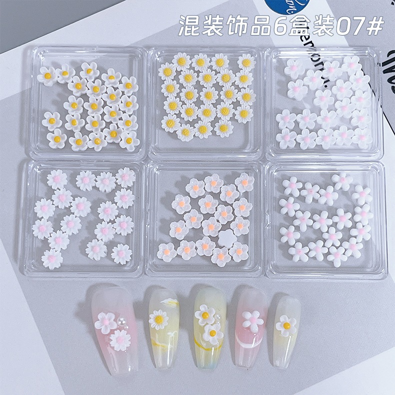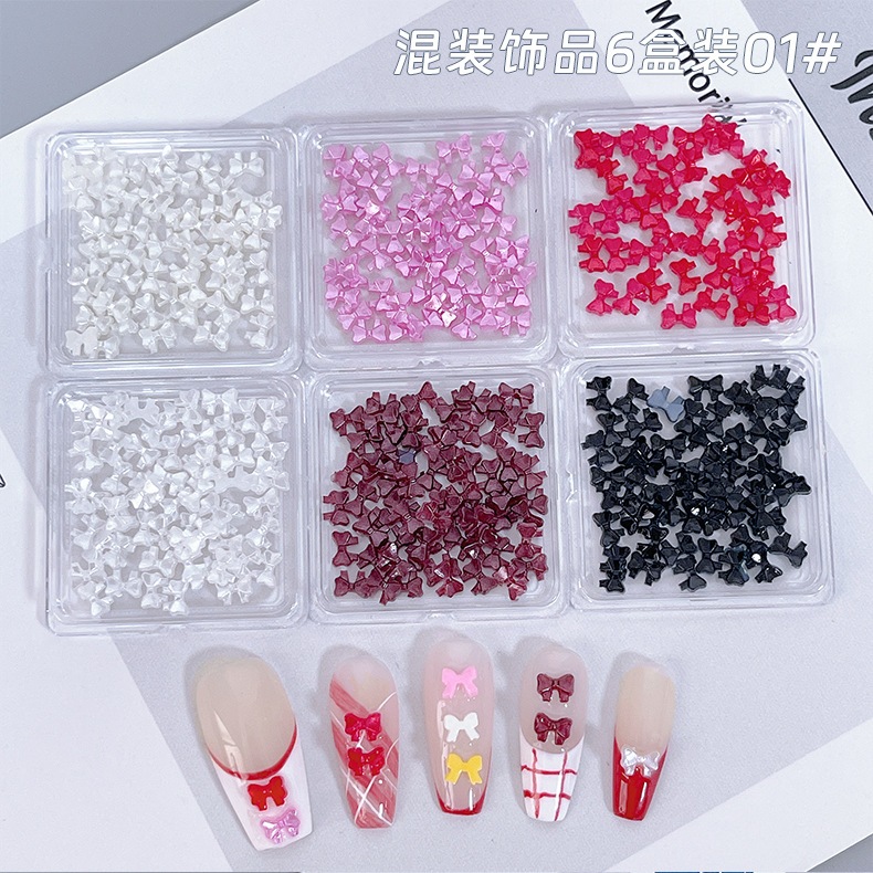 ネイルアート 人気商品 ミニ ボウ ホワイト フラワー 6箱 DIY ネイルデコレーション 素材 パッケージ アクセサリー