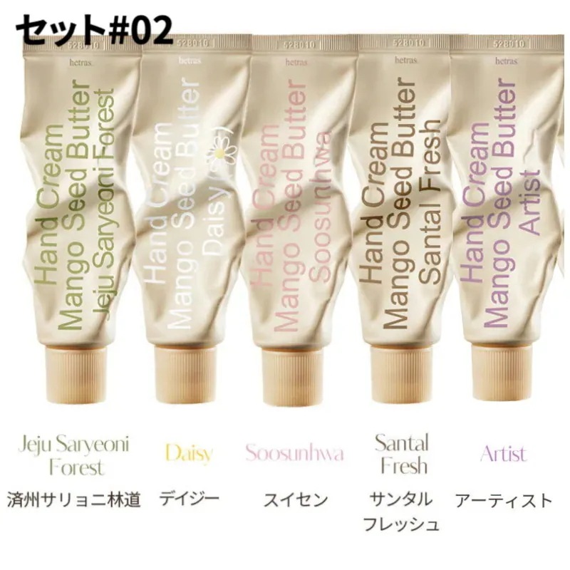 ヘトラス【5本ギフトセット/パウチ+チューブリンガー付】パフュームシルキー ハンドクリーム 50mL×5種
