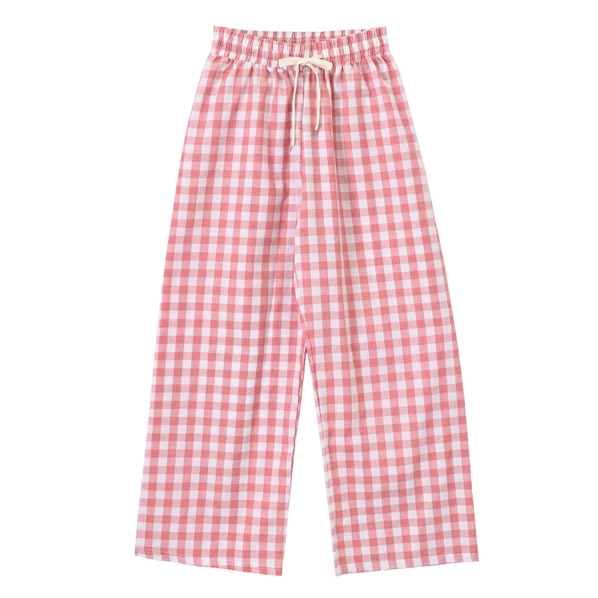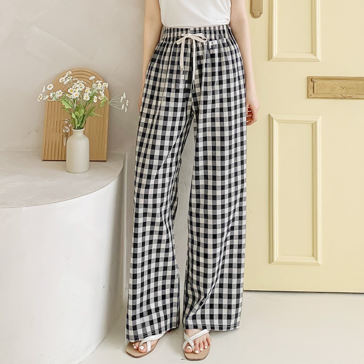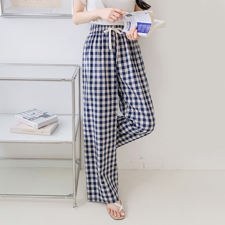 リアル スタイルリネンライクギンガムチェックドロストイージーワイドパンツ レディース ボトムス 夏 薄手 涼しい 涼感 ロング丈 ウエストゴム ハイウエスト ゆったり 大きめ 楽ちん おしゃれ 可愛い
