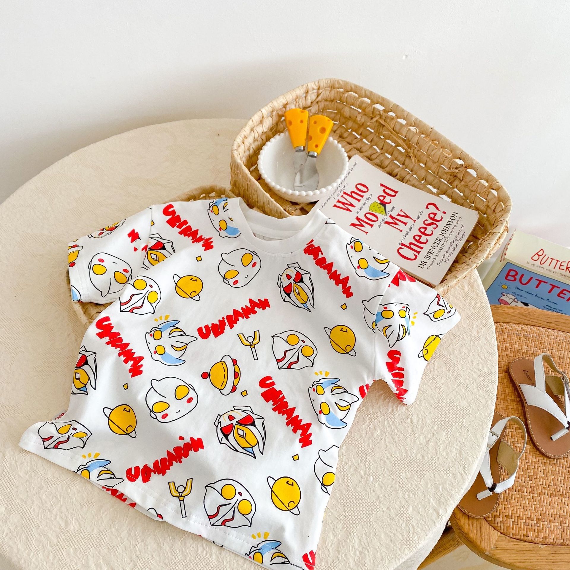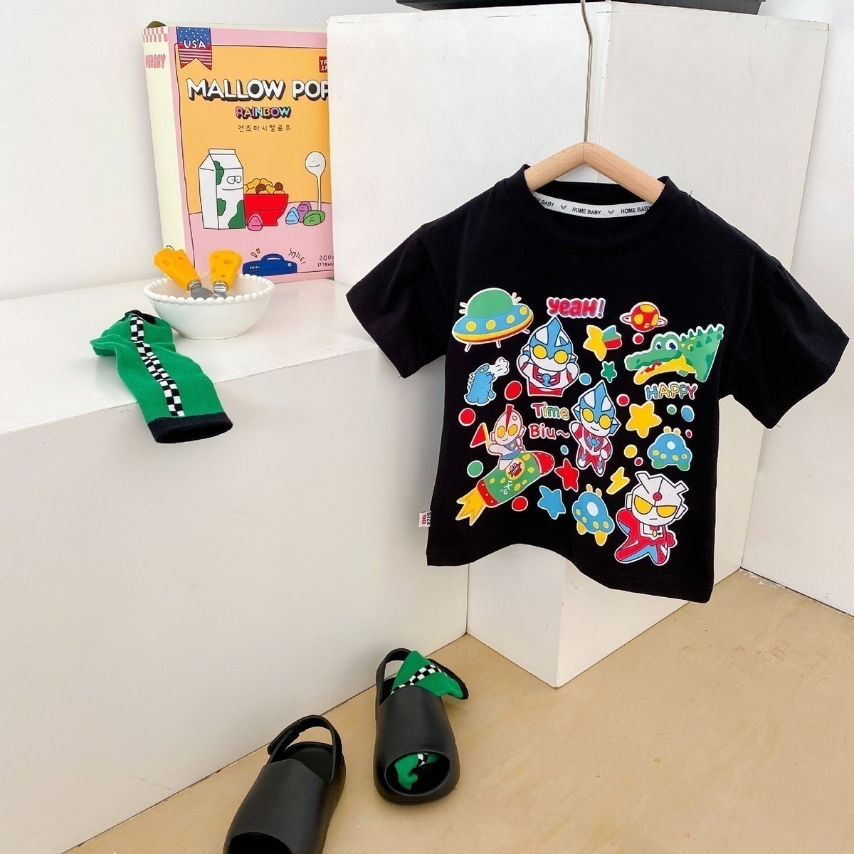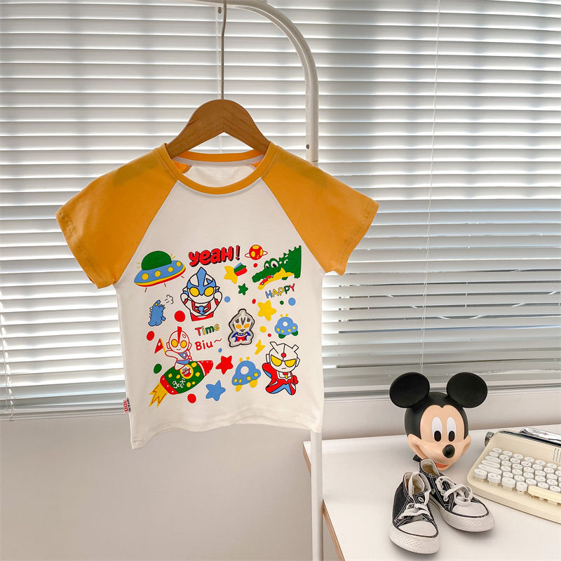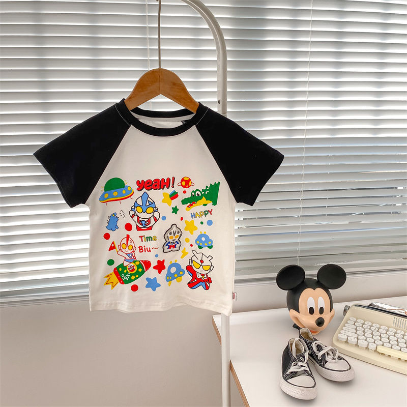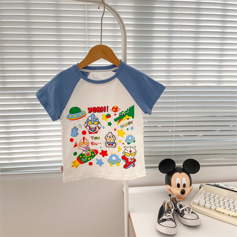 ウルトラマンズボン夏新型ウルトラ発光tシャツ子供可愛い肩袖綿質点灯透かし可愛いカジュアル半袖ブーム