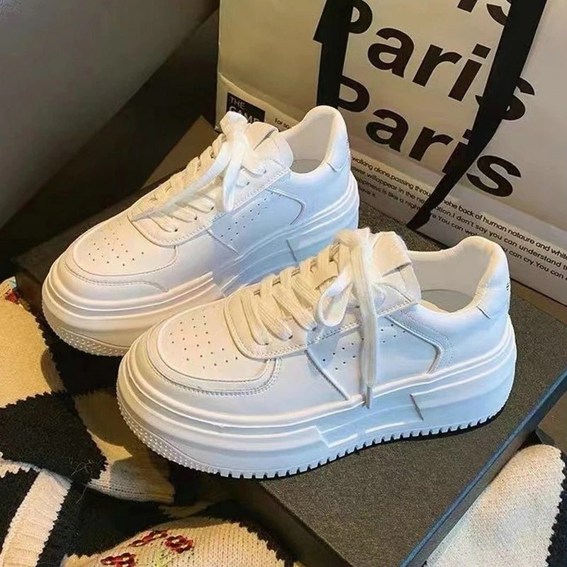 買い逃し注意 ホワイト 厚底スニーカー 韓国ファッション ラウンドトゥ レースアップ 厚底スニーカー 可愛い sweet系 厚底スニーカー 原宿風