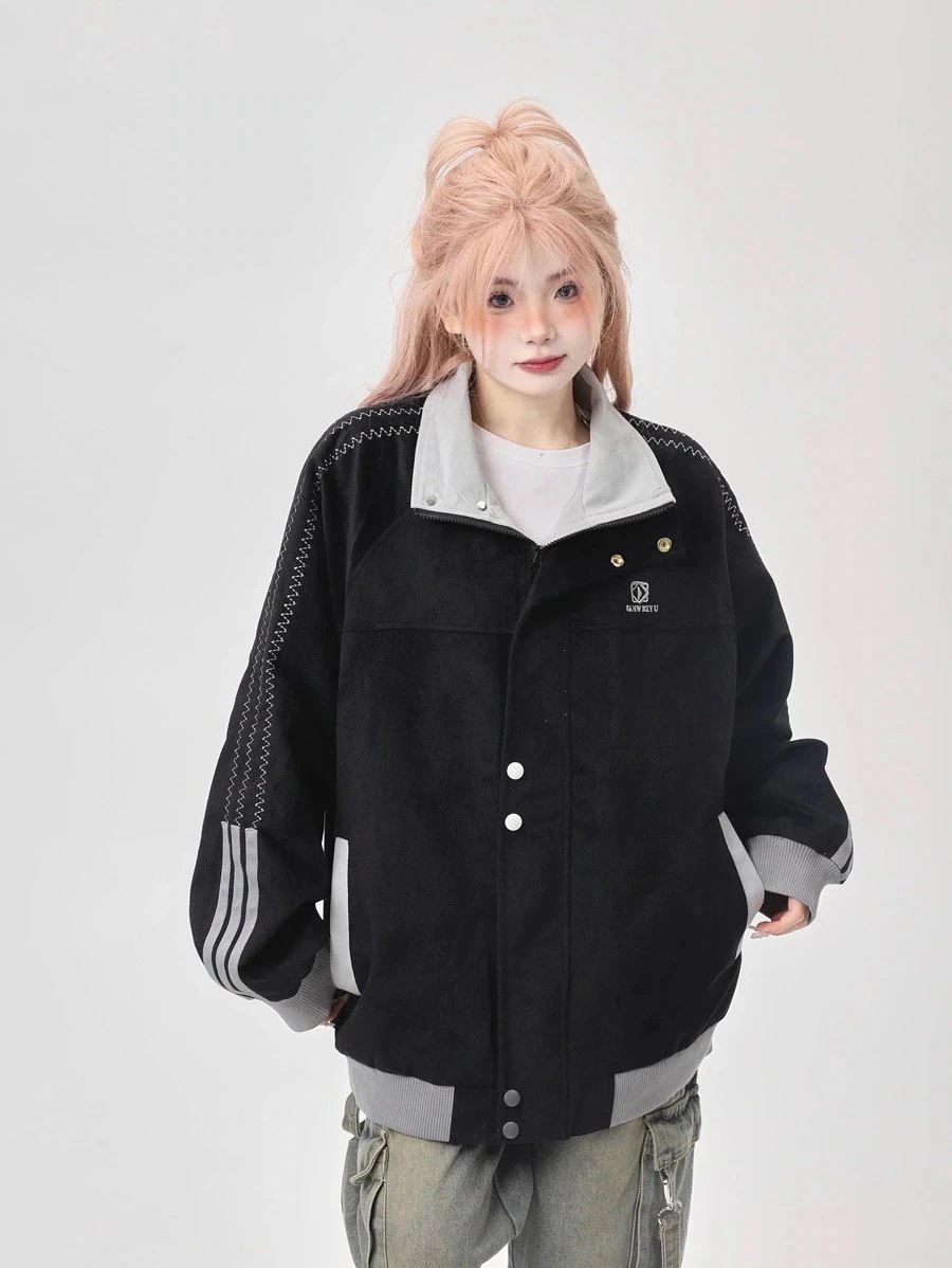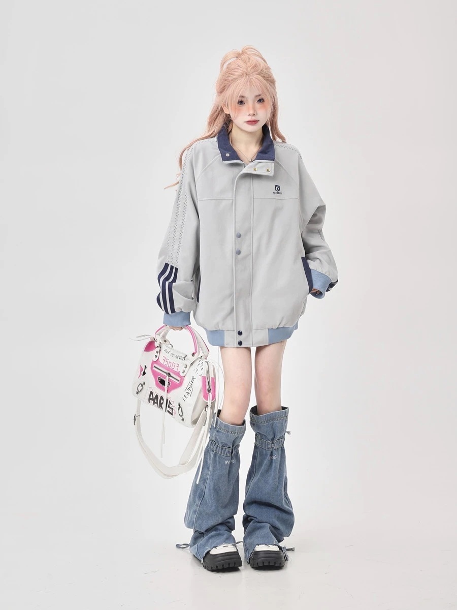 5 秋冬 韓国 かわいい レディース ックスタンドネックアウターブルー ブラックブルゾンお出かけ長袖セクシーシルエットトップスサイド冬カジュアルファッション系サイズお出かけフル丈トラック