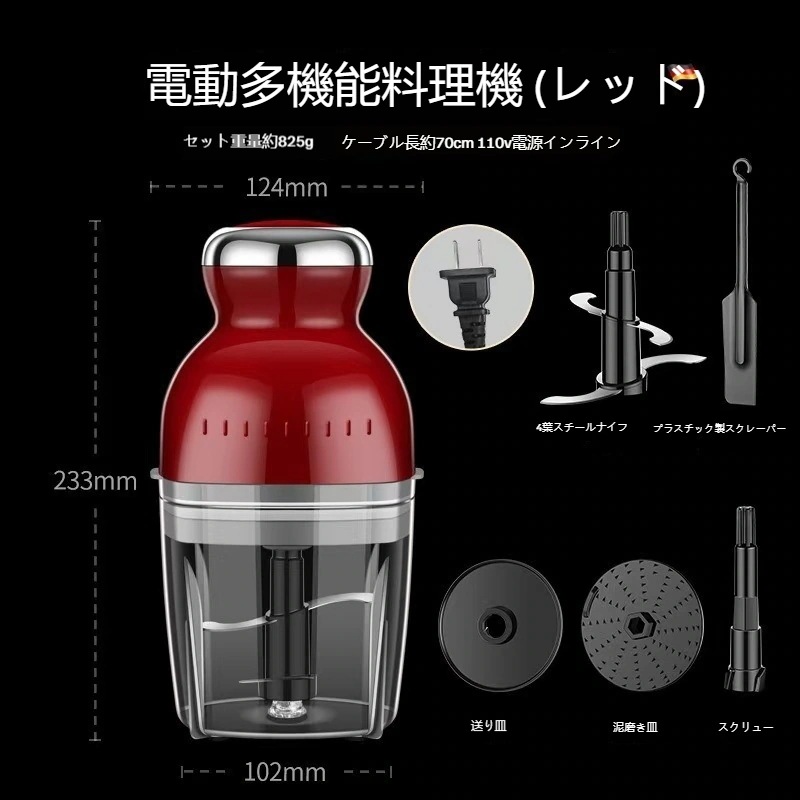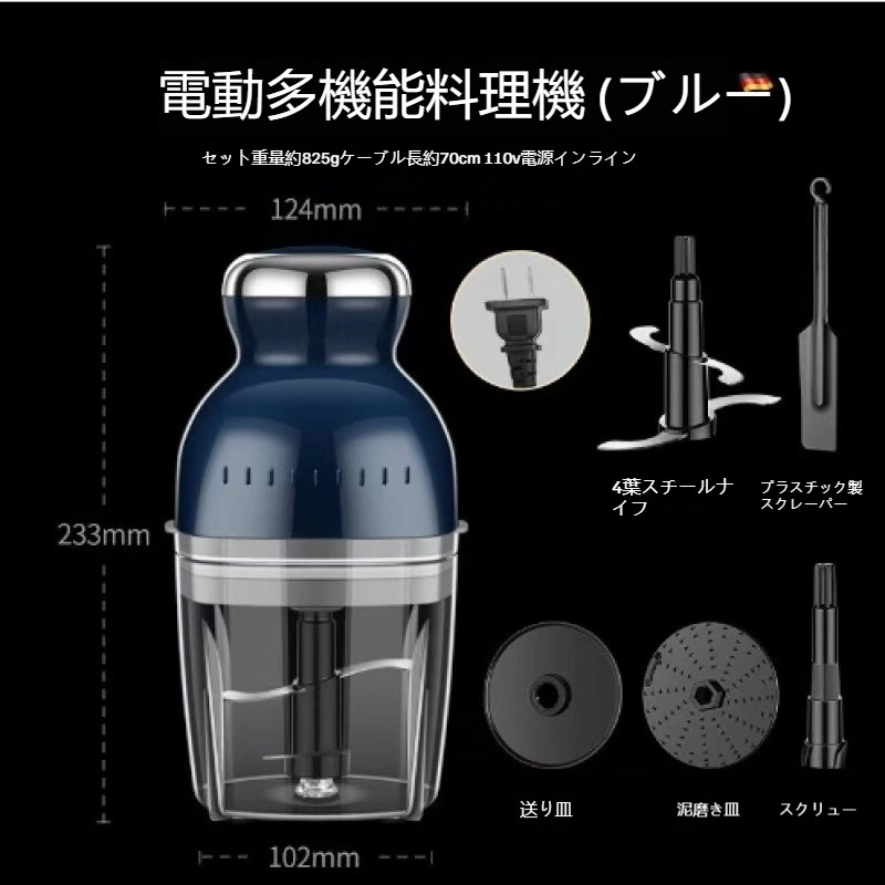 フードプロセッサー 電動 ミキサー 小型 粉末機 家庭用 ブレンダー 離乳食 大根おろし器 肉切り機 コンパクト みじん切り ひき肉機 小型 スムージー ジュース ジューサー ブレンダー 野菜 果物