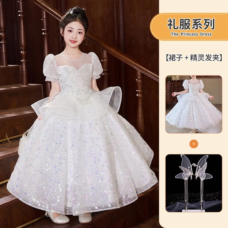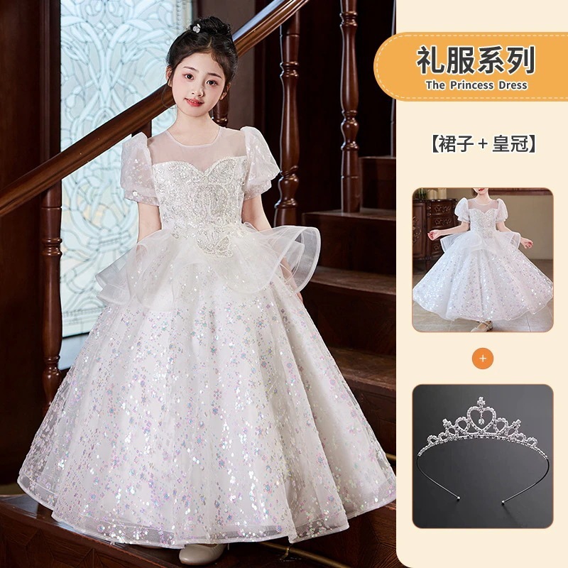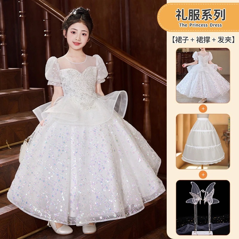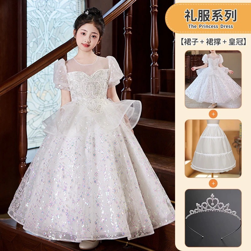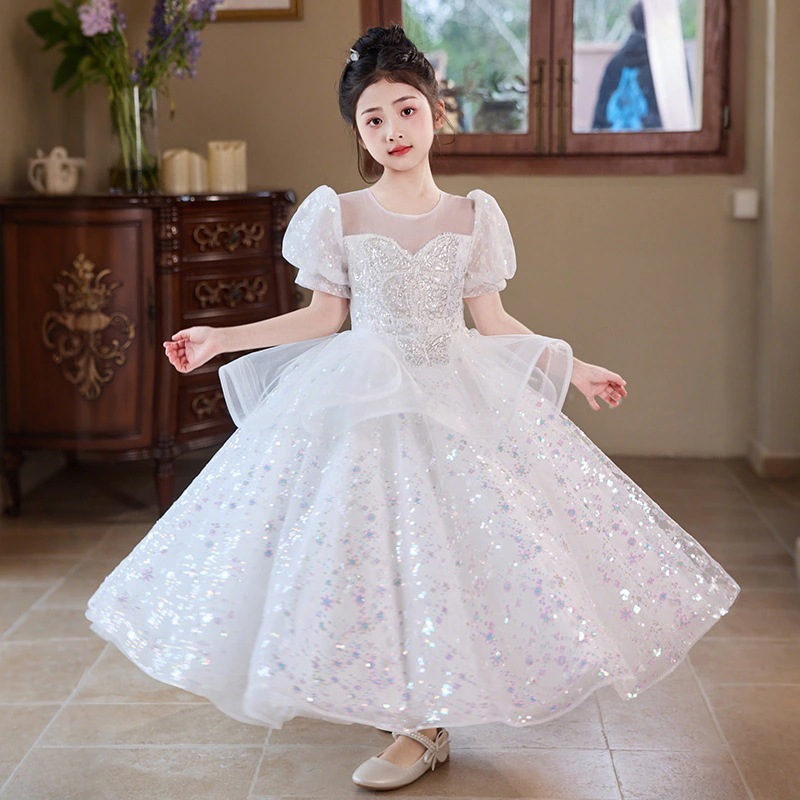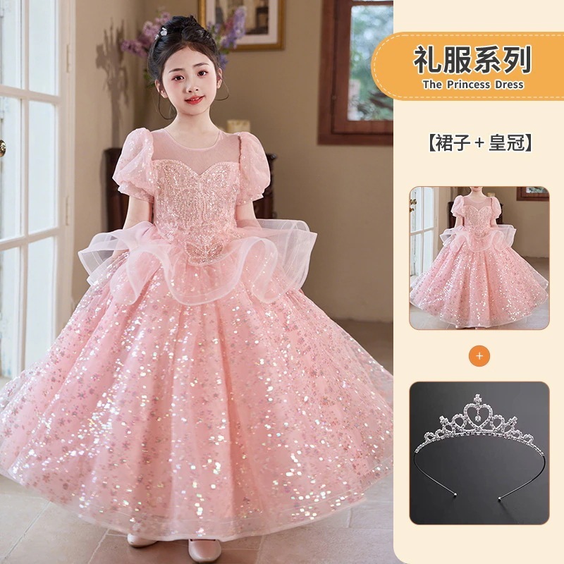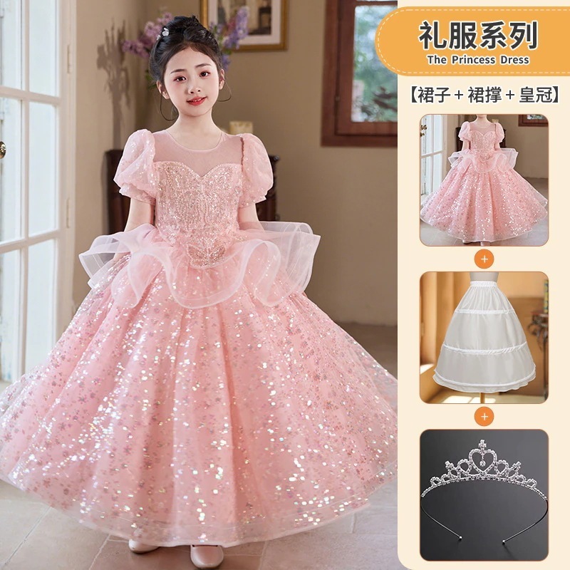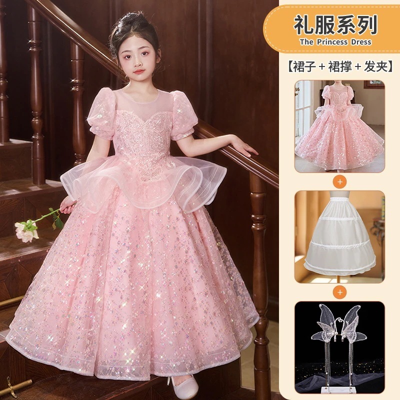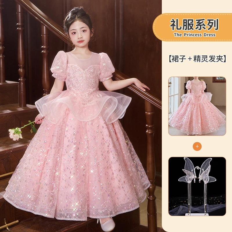 女の子のドレスピンクの小さな女の子の司会者ピアノ演奏衣装フラワーガールの結婚式子供用プリンセスドレス
