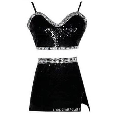 ローズ パクチェヨンと同じサスペンダースカート スパンコール付きdsパフォーマンス衣装 Blackpink 歌唱衣装 女性歌手スーツ