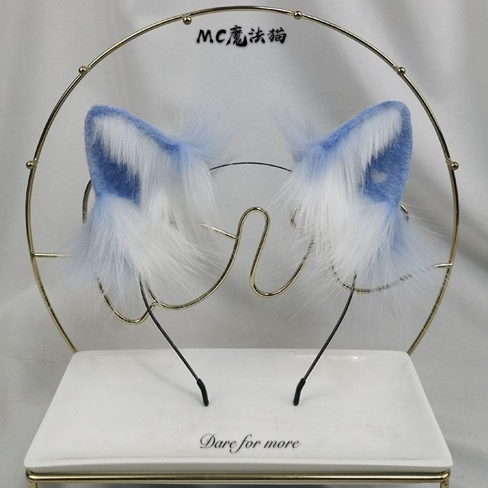 アイスブルー猫耳と獣耳手作りヘアフープヘアクリップ Kc ヘッドウェア模擬折りたたみ猫ヘアアクセサリーパーティー小道具ロールプレイ