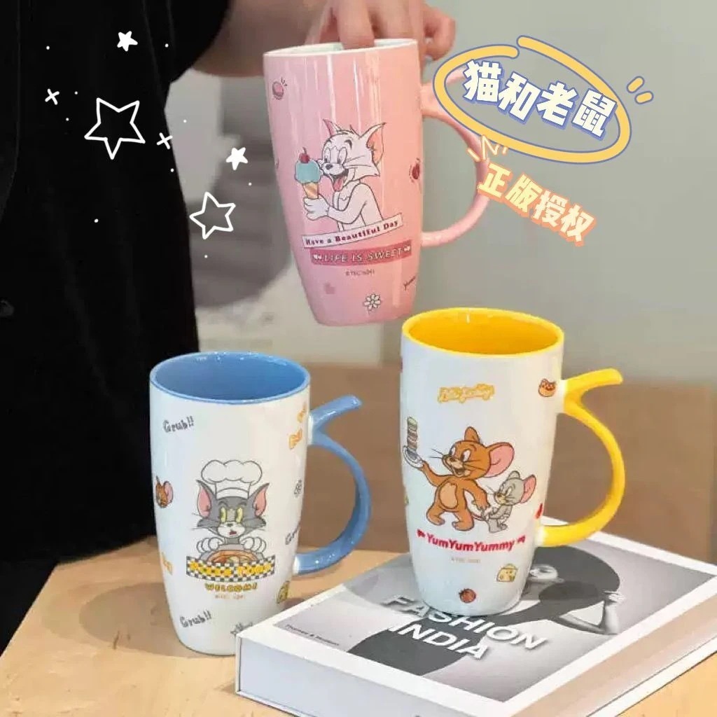 トムとジェリー陶磁器マグカップ女子陶磁器カップ蓋付きコップ大容量コップ耐高温爆金