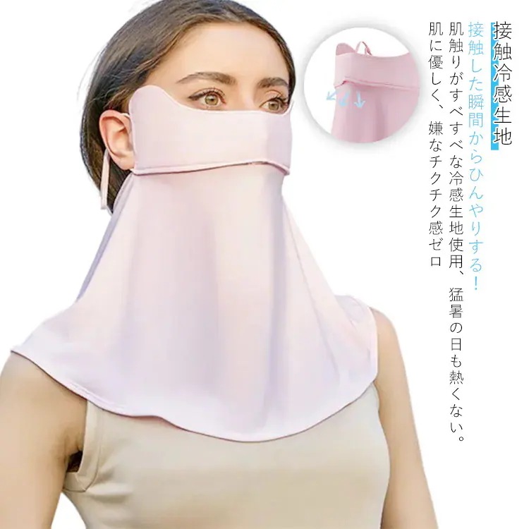 フェイスカバー 接触冷感 2枚セット 日焼け防止 日焼け対策 息苦しくない 花粉対策 UVカット フェイスマスク ネックカバー 男女兼用 用 洗える 紫外線対策 通気性 ひんやり サイズ調節可能 ラ