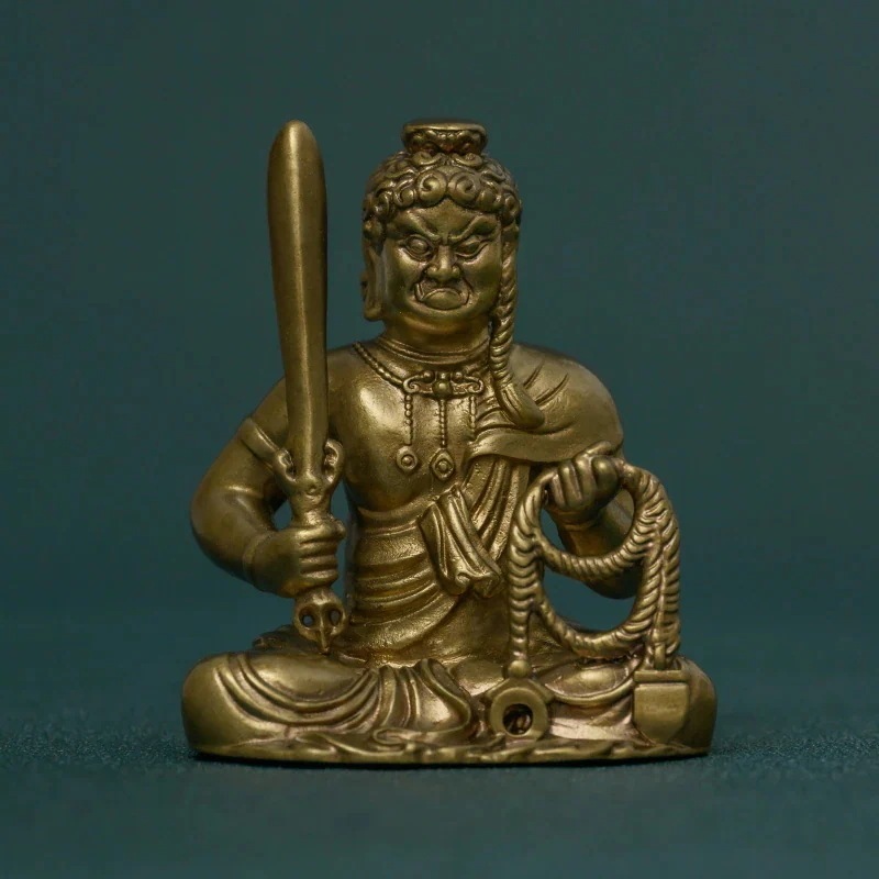 手作 不動明王 菩薩像 黄銅製の強さと安寧の守護者玄関やオフィスで災厄を防ぎ心の安定をもたらす