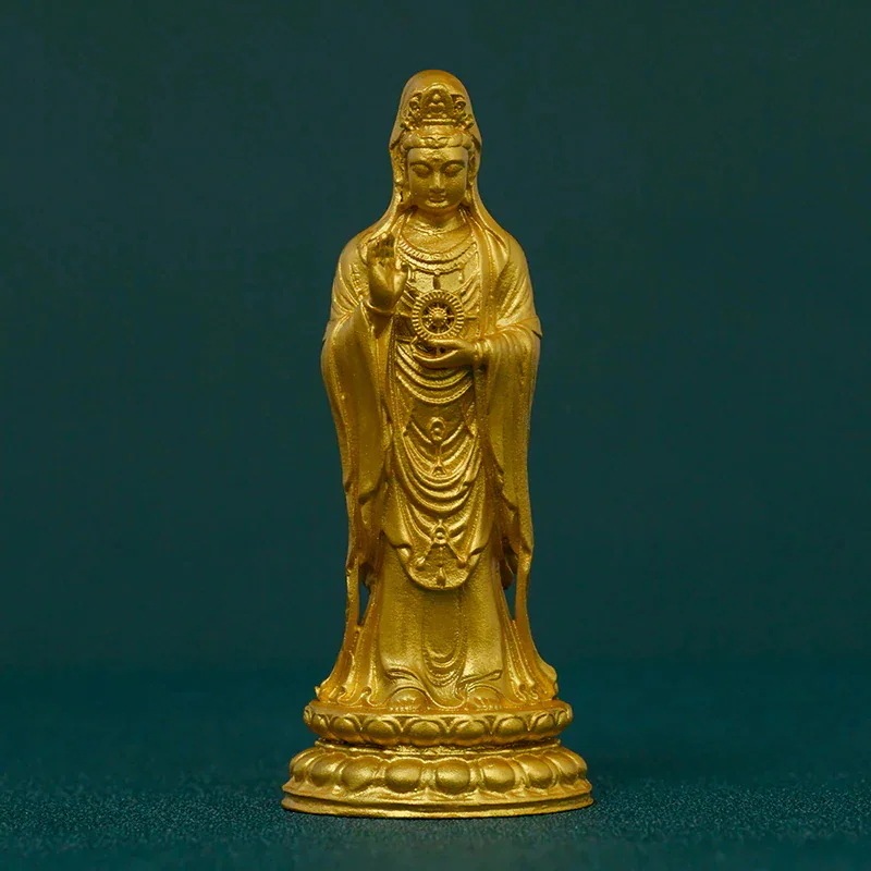 手作 普陀山観音菩薩像 金色の光と慈悲の守護菩薩像書斎やリビングで幸福と安らぎをもたらす
