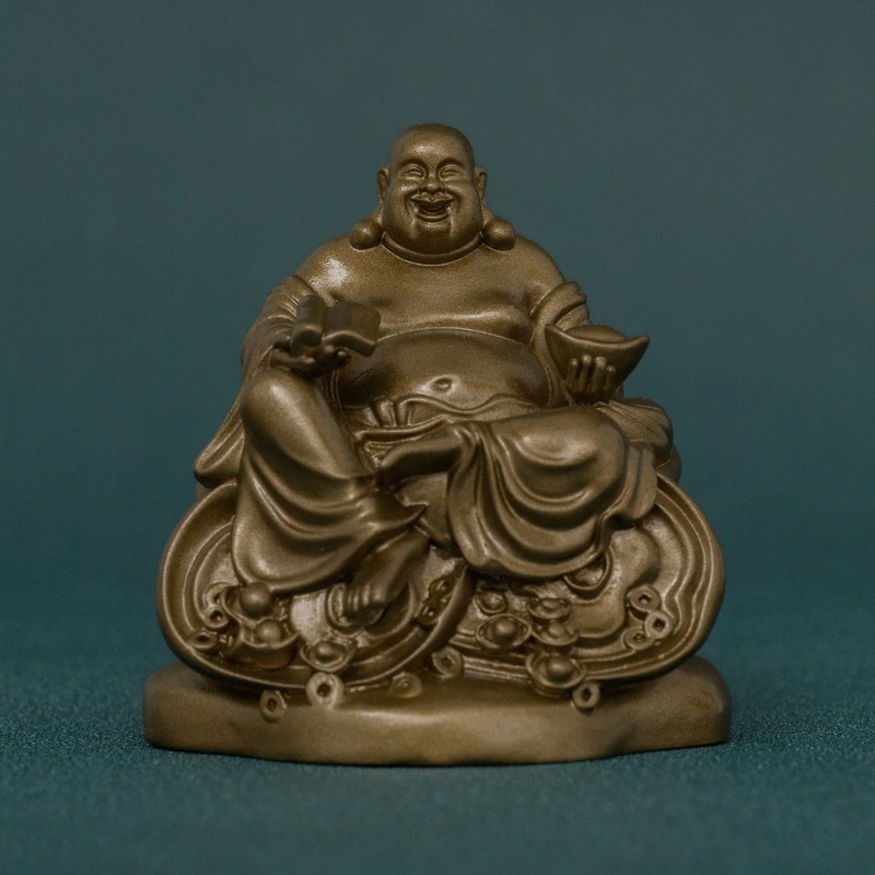 手作 弥勒仏像 黄銅製の幸福と富の守護者家庭や書斎で心の安定と喜びをもたらす存在