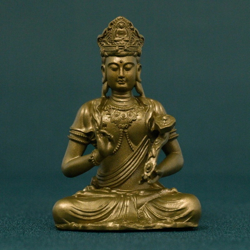 普賢菩薩 仏像 小型黄銅製の守護仏像智慧と徳行を象徴し書斎や瞑想空間に適