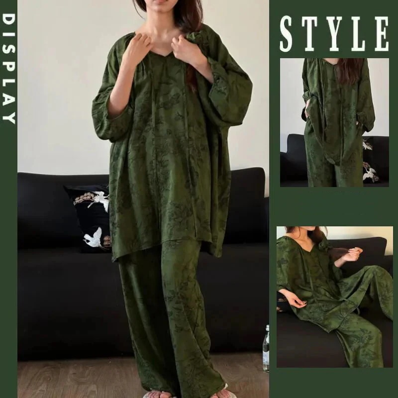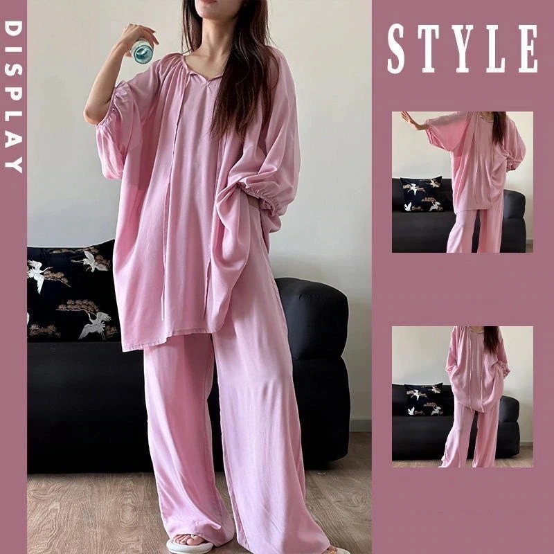 上下セット/ワンピース レディースパジャマ レディース 長袖 Vネック 上下セット 部屋着 春 夏 秋 ゆったり 無地 女性らしい 肌触り良い