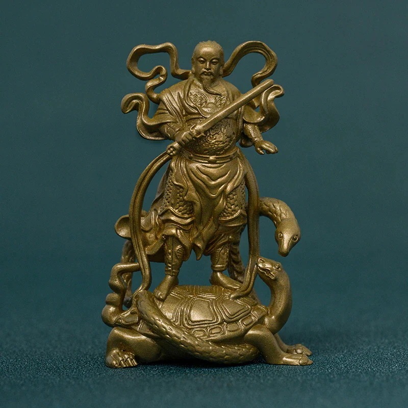 手作 真武大帝 神像 黄銅製の勇気と守護の象徴オフィスや玄関に適なヴィンテージデザイン
