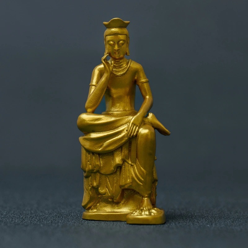手作 思惟弥勒菩薩像 金色の慈悲と智慧の守護者家庭やオフィスで心の調和と繁栄を導く存在
