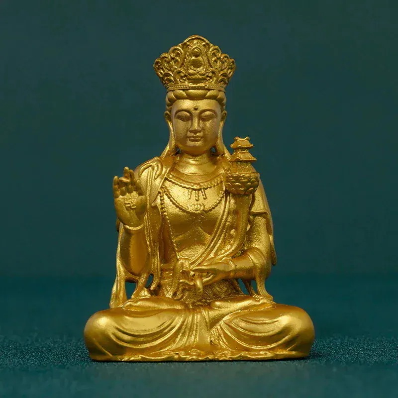 手作 天冠弥勒菩薩像 金色の慈悲と光の守護菩薩像書斎やリビングで幸福と安らぎを導く