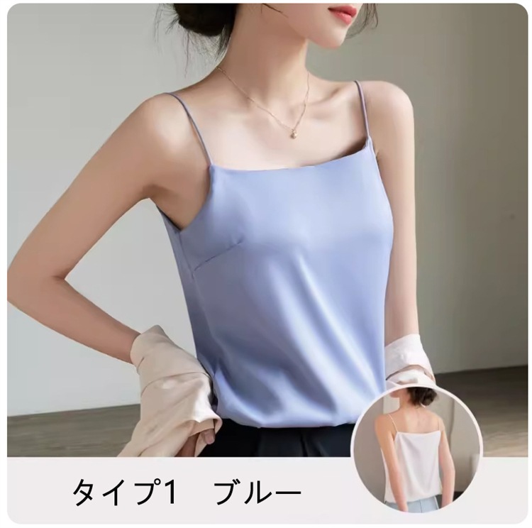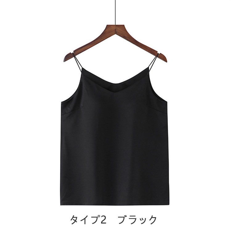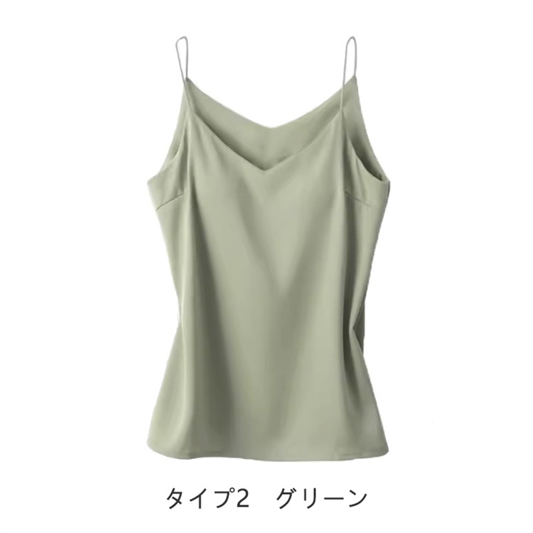キャミソール カップ付き 下着 インナー ラウンドネック Vネック 2タイプ ブラウス トップス タンクトップ サテンスリップ 重ね着 光沢 オフィス 快適 安定 通気性