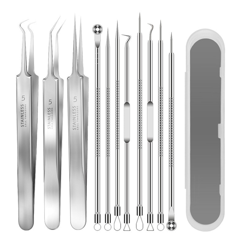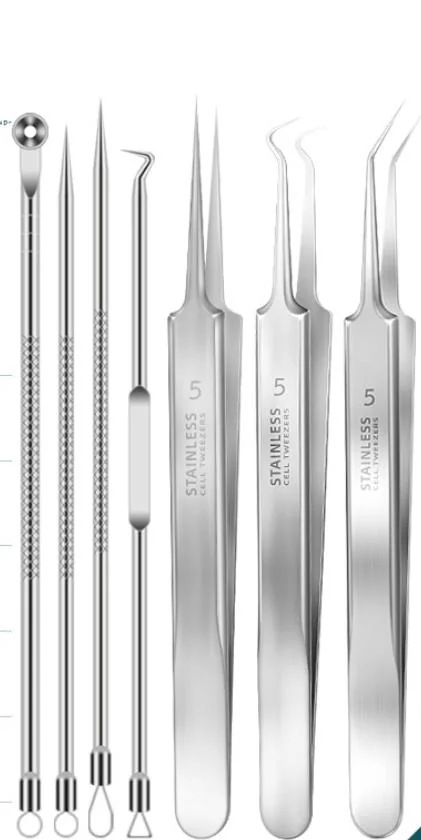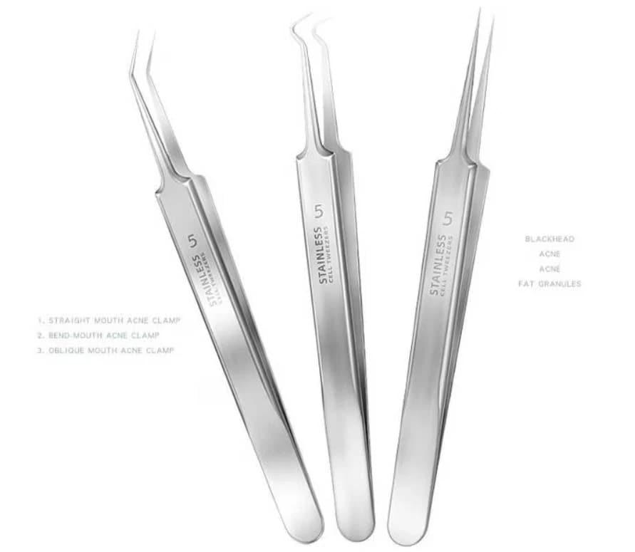ニードル 細 ピンセット角栓ピンセット ステンレススチールコメドプッシャー3種類形状 ステンレス製 錆びにくい