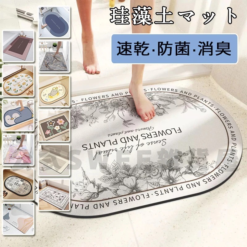 最安値挑戦珪藻土 バスマット ソフト 吸水 速乾 4060cm 柔らかい 足拭きマット 浴室 お風呂 トイレ 洗面所 バス 吸水マット 玄関マット 滑り止め