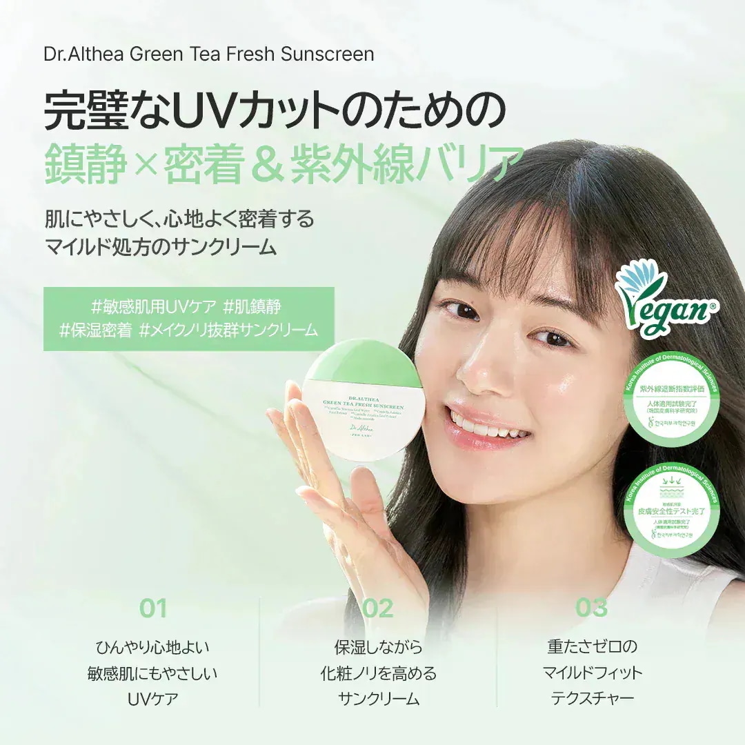 5 5Ban*** 2026.02.27 選択:【さっぱり 鎮静】グリーンティー フレッシュ サンスクリーンオプション : 選択:【さっぱり/鎮静】グリーンティー フレッシュ サンスクリーン 肌タイプ : 乾燥肌 肌トーン : イエベ 肌の悩み : 乾燥, しわ・たるみ