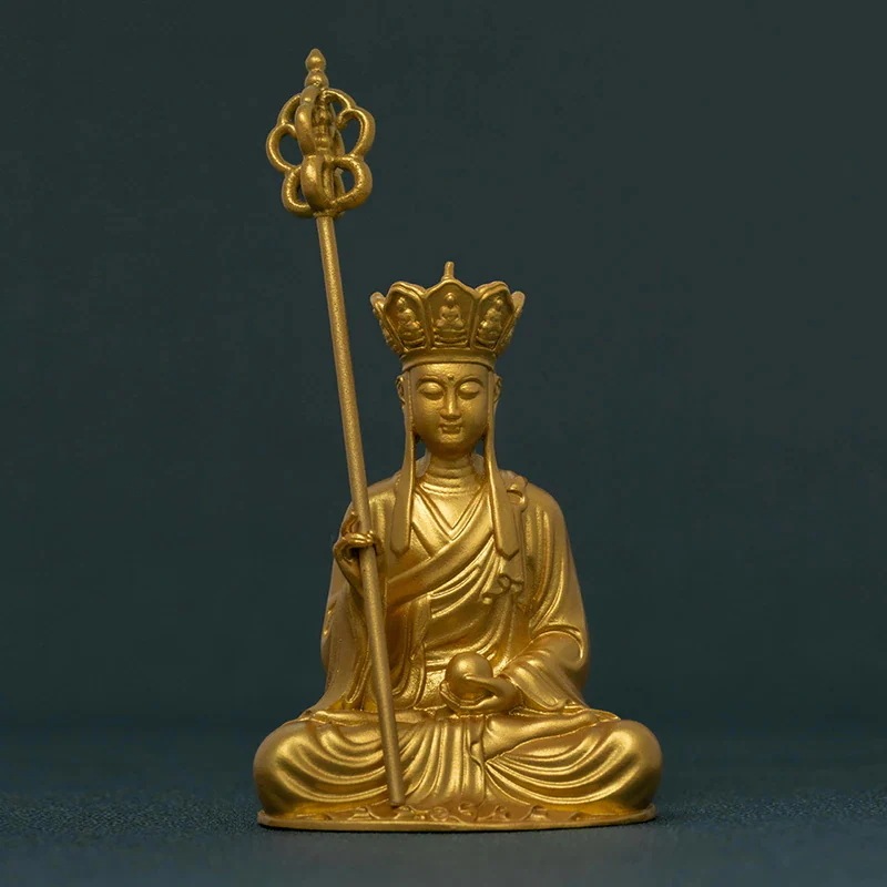 手作 地蔵菩薩像 金色の光と慈悲の守護菩薩像書斎やオフィスで精神の安定と調和を導く