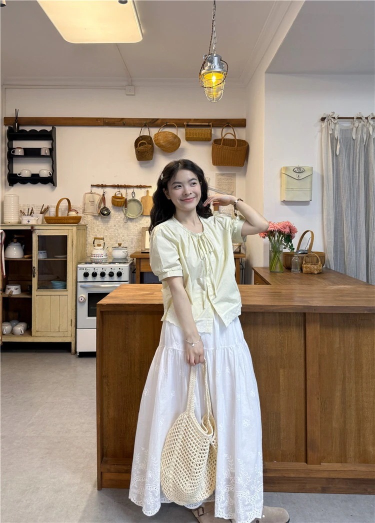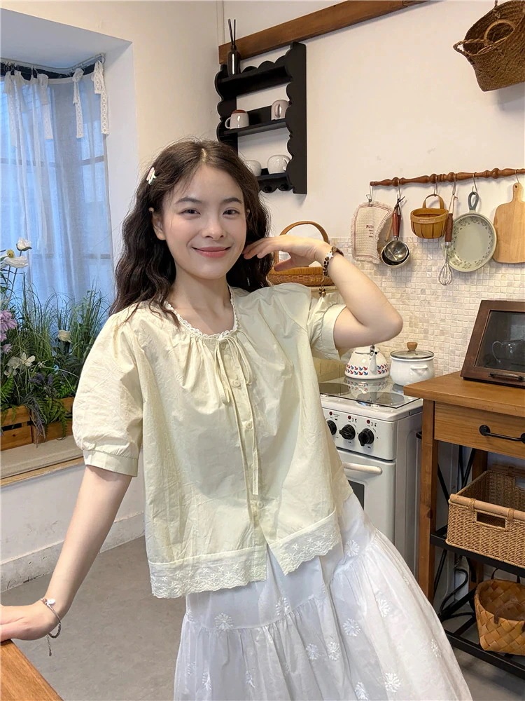 2025 春夏トップス シャツ ブラウス 半袖おしゃれ ラウンドネック 春 ゆったり かわいい フレンチ 甘め おしゃれ 韓国ファッション レディース お出かけ