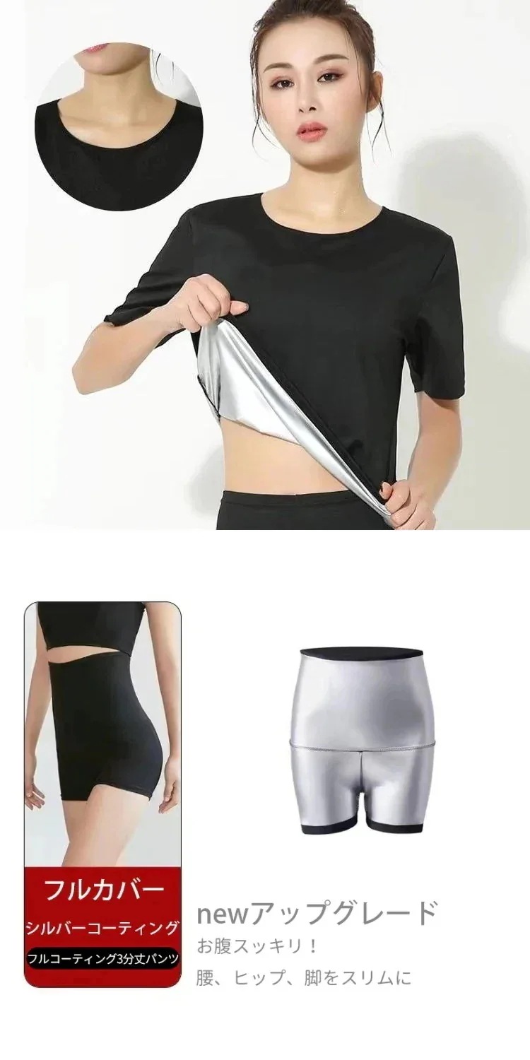 サウナスーツ レディース ダイエットウェア 発汗 サウナ レディース フィットネスウェア トレーニング ダイエット ウェア ジムウェア 長袖/半袖 上下セット ダイエット サウナパンツ 大きいサイズ