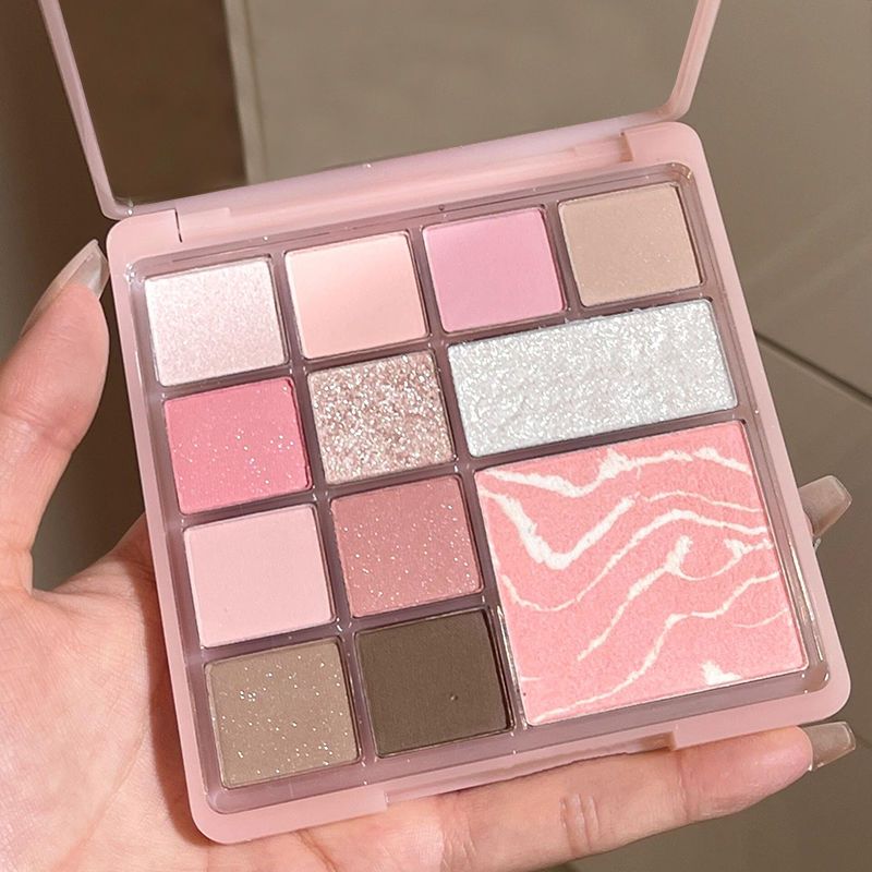 12色の煙のピンクのバラのミルクティーの真珠の光のマットな大地の茶色のアイシャドーの盤の腫れを消す色の頬紅の平価の化粧のDF