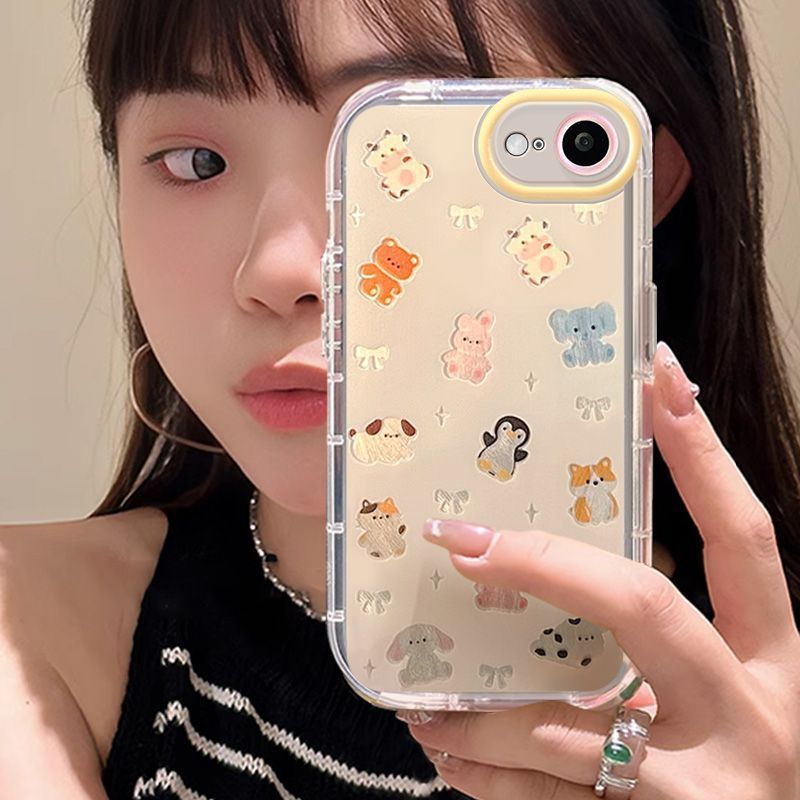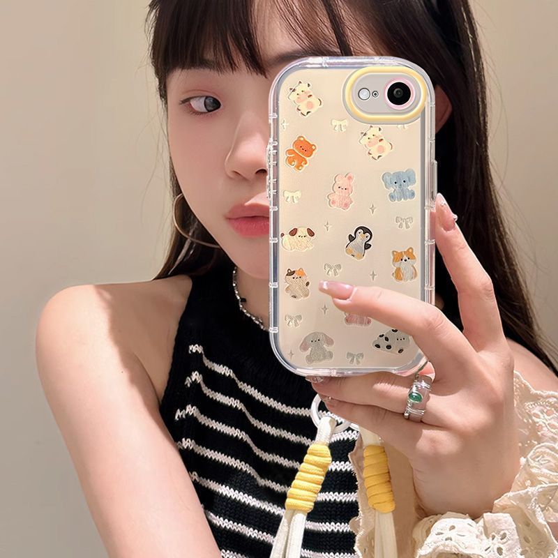 動物 ストラップ付き シリコン iphone15pro 14 新品 iphone16eケース iphoneケース かわいい 韓国 iPhoneケース