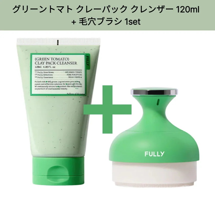 FULLYグリーントマトクレイパッククレンザー120ml+毛穴ブラシ1set/毛穴すっきり 洗顔パック/グリーントマト配合/ビーガン処方のクレイパック洗顔//ブラックヘッドの取り外し/クレンジングフォーム