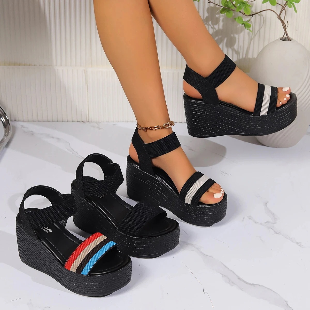 女性用厚底サンダル オープントゥウェッジシューズ ラージサイズ 快適 トレンド アウトドア カジュアル