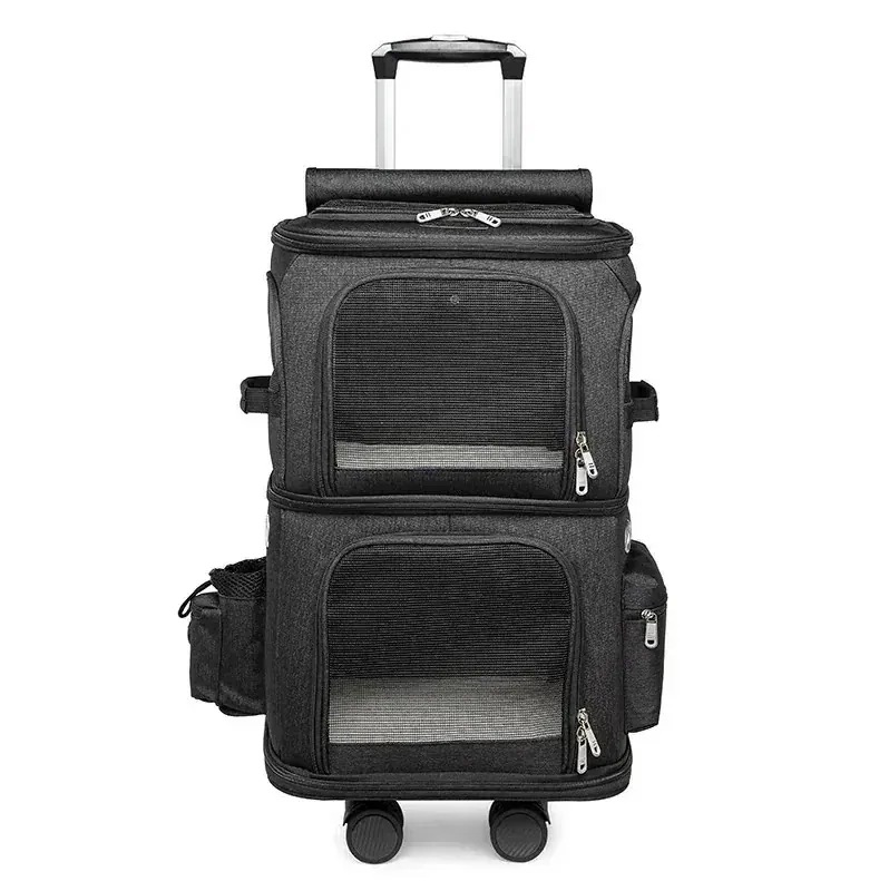 3日で出荷 ポータブルペットキャリーバッグ ユニバーサルホイール付き 4輪360度回転 上下2層バッグ 折り畳み式 大容量 安定性 小型犬 猫 小動物 15kg 通気性 散歩 旅行 通院 災害避難用