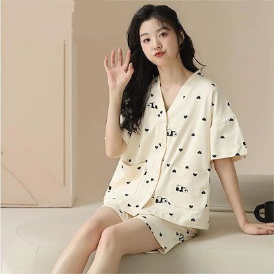 ルームウェア パンダ 敏感肌に優しい 可愛い パジャマセット パジャマパンツ レディース 春夏 半袖 パジャマ 綿上下セット 快適 肌触り ゆったり 部屋着 オシャレ