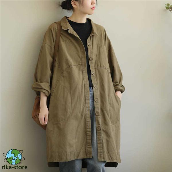 スプリングコート レディース 薄手 トレンチコート 春 ゆったり ロング丈 体型カバーアウター コート カジュアル オーバーサイズ 大きいサイズ 春秋