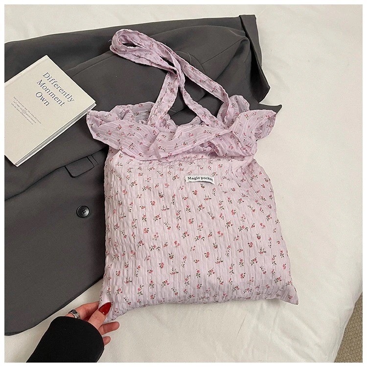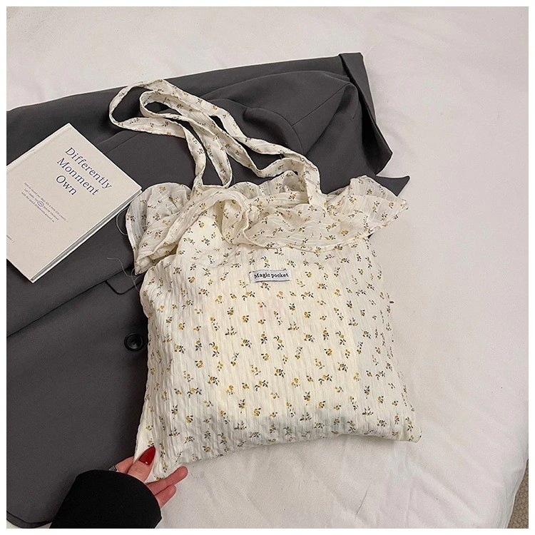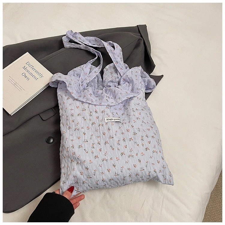 おしゃれトートバッグ ショルダーバッグ シフォンフリルエッジ花布バッグレディースバッグ新作トート韓国大容量バッグ