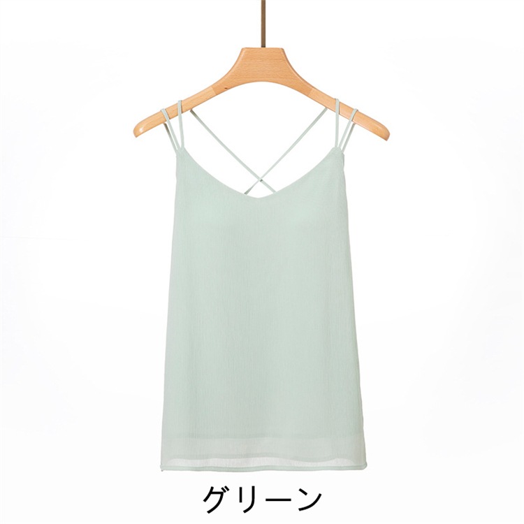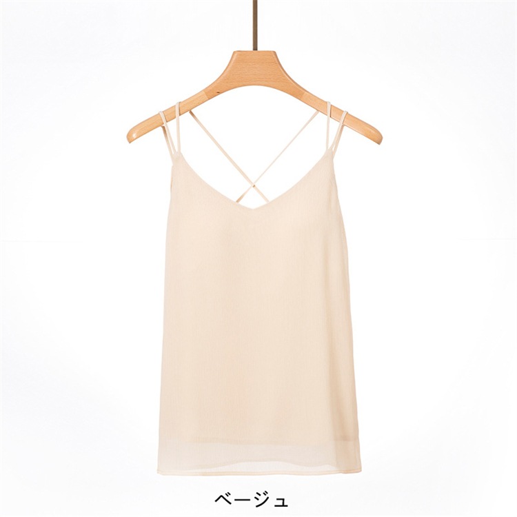 キャミソール カップ付き 下着 インナー Vネック ブラウス トップス タンクトップ サテンスリップ 重ね着 光沢 オフィス 快適 安定 通気性