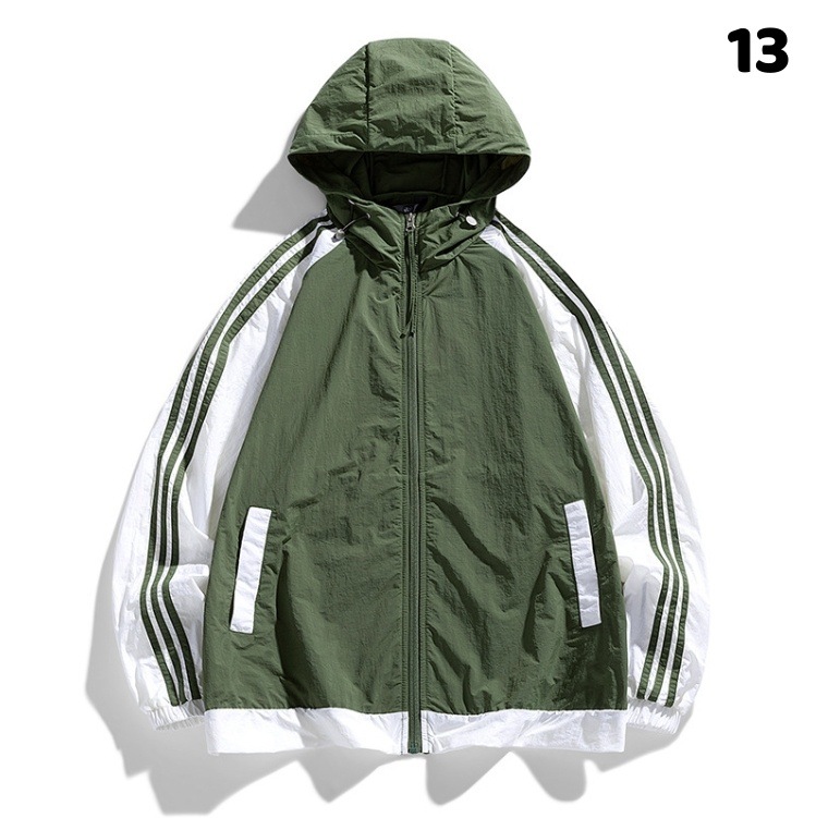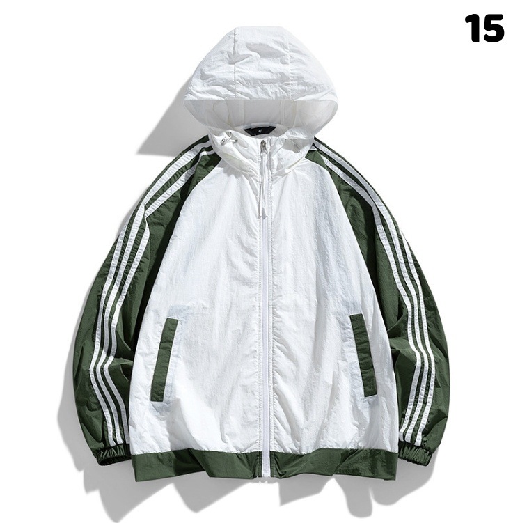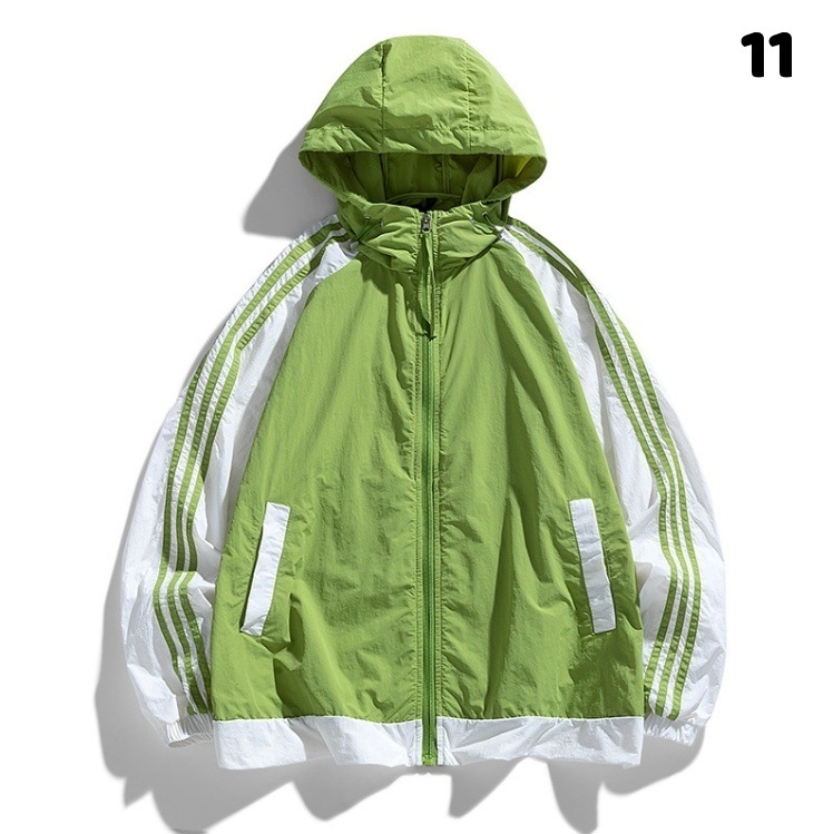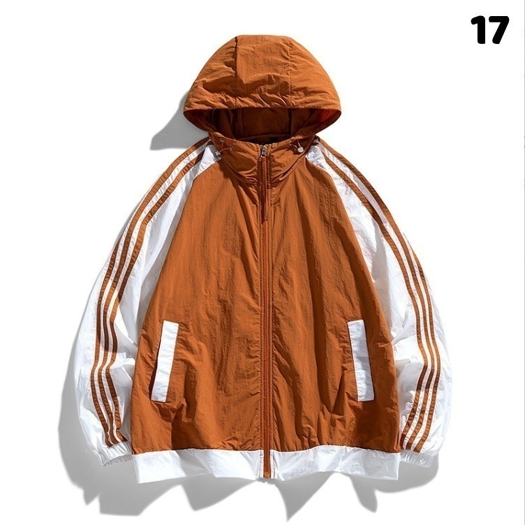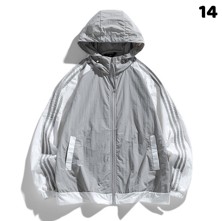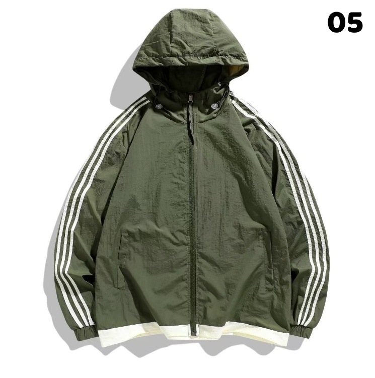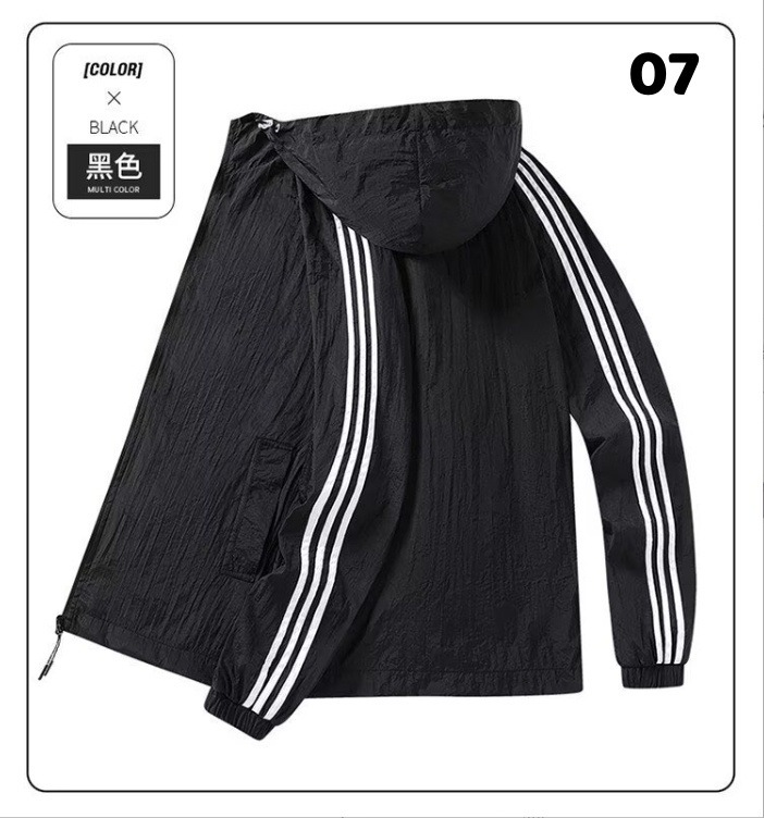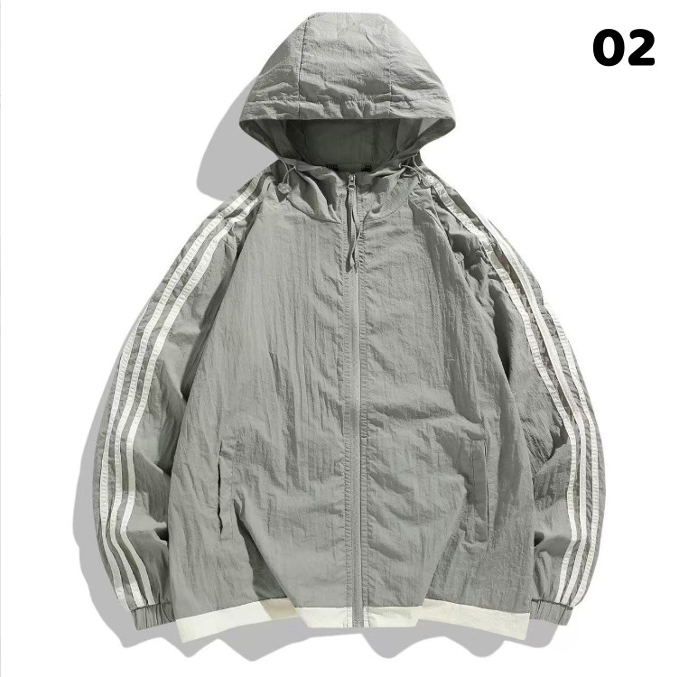 シャカシャカ素材です。薄くて軽いけど風は通さないので、真夏は暑いと思います。夏のちょっと涼しい日や、春秋の軽めのアウターにちょうどいいかなという感じです。ダボっと着たいなと思って2XLを頼みましたが、体感XLです。(普段は、普通の服はL、羽織はXLを買っています)