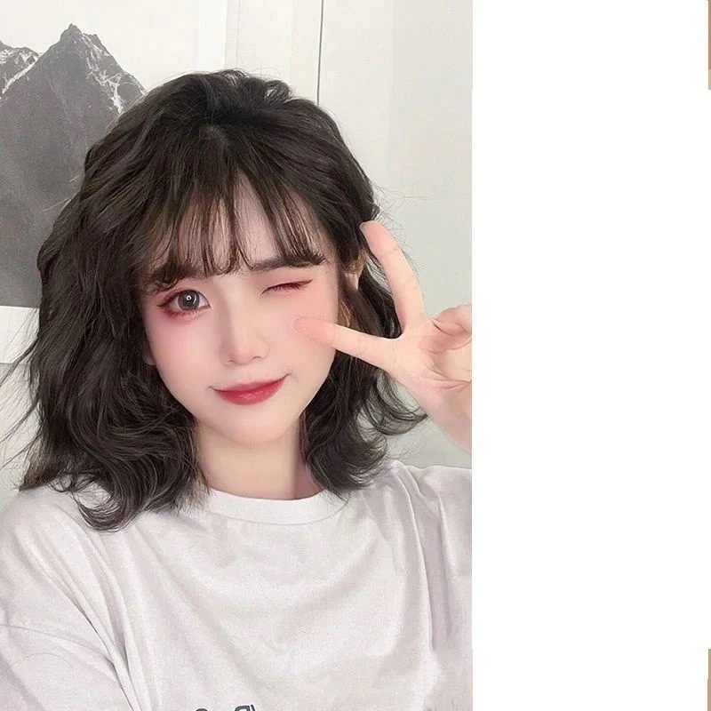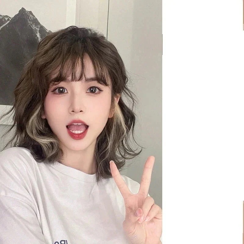 ウィッグショートヘア夏フルセット自然な模倣染め水波紋羊毛巻き丸顔ヘアに似合うウィッグカバー かつら cos ぜんちょうかつら