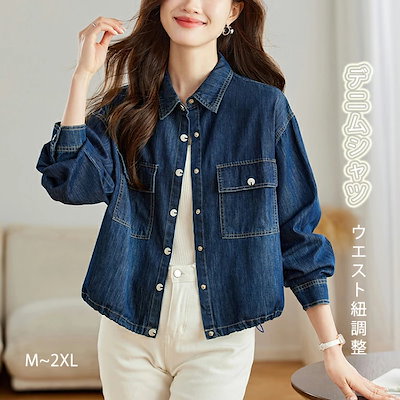 デニムシャツ トップス デニムジャケット レディース Gジャン ジージャン デニム ジャケット 長袖 ウエスト紐調整 ミニ丈 ポケット付き ショート アウター ライトアウター 羽織 カットオフ ゆった