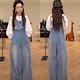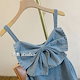 オールインワン デニム ビッグリボン レディース 前後2way サロペット オーバーオール デニム ワイドパンツ ワイドデニム サスペンダー パンツ ボトムス おしゃれ 可愛い 無地 春 夏 秋